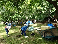 - ボランティアのみなさまとの園内管理作業で竹林管理を実施。年末恒例のイベント「竹を切ろう 門松づくり」の事前準備として、林床の下草刈りと枯れ竹の整理をしました。気まぐれに寒風が吹くなか、ノイバラを始めとするトゲのある植物に注意を払いつつ作業。特に乾いて固くなった枯れ竹は、切るのに一苦労でした。ご協力ありがとうございました。