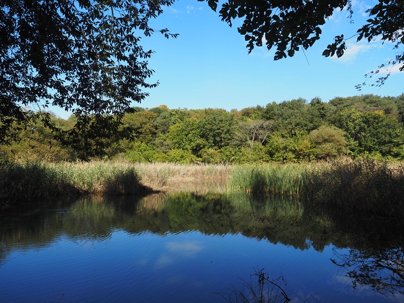 - そろそろ双眼鏡が手放せない季節です。めだかのT字路に行って帰って来るだけで、様々な鳥の気配が感じられました。湿地の奥からは「ピョーピョーピョー」と特徴のあるアリスイの声。頭上を、渡り途中のヒヨドリの群れや、シメやビンズイが次々に鳴きながら飛んでゆきました。木のてっぺんには、もちろんモズ。また、来園者の方から標柱15番でイカルの情報をいただきました。