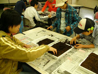 - ふじみ野市立さぎの森小学校3年生の皆さんがきてくれました。草むらでくっつくタネを集め、それをルーペで観察しながらスケッチしました(写真)。じつは、タネが「くっつく仕組み」って種類によって少しずつ違うんです。皆さんには、細かいところまでよ〜く見てもらったので、よ〜く分かってもらえました♪ それにしても、よくできてるな〜。スタッフも改めて感心。