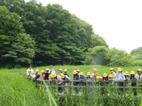 - 連日、小学生の団体がやって来て、園内は毎日にぎやかです。今日は鳩ヶ谷市立里小学校の4年生。ナナフシやニホンアカガエルなど、初めて見る生きものにみんな興味津々でした(写真)。