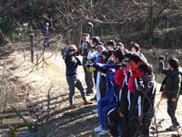 - 北本市立西中学校2年生のみなさんがバードウォッチングで来園。野鳥を観察し、そこから俳句を作るのが最終目標です。しかもEテレの収録付き(写真)。何が出てくれるかな〜とドキドキでしたが、アオサギやハイタカ、ノスリが悠然と空を舞い、ジョウビタキとツグミも見やすい位置に登場してくれました。みんな野鳥に目がくぎ付けで、俳句を考えるのを忘れてしまうほど! 番組の放映は3月22日「俳句さく咲く!」です。お楽しみに〜♪