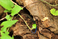 - 木道を歩いていると、ちっちゃなカナヘビが日なたぼっこしているところによく出会います。近づくと草やぶに隠れてしまうのですが、面白いほどに次から次へと見つかるのです。特に今日は、カナヘビに混じって、青いしっぽのヒガシニホントカゲも姿を見せてくれました。ラッキー♪