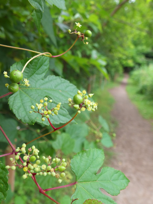 - 写真はめだかのT字路のノブドウ。秋に熟す実はカラフルで目を引きますが、花は小さいのであまり目立ちません。でも、よくよく見ると星のようなかわいらしい形です♪