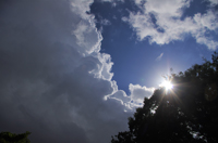 - 朝、センターに着くと、もくもく湧き上がる入道雲が徐々に広がり、太陽に迫っていました(写真)。その様子を見て「今日の天気は変わりやすい」と言っていた天気予報を思い出しました。そして巡視に行くために外へ出ると、すぐに雨が勢いよく降り始めました。