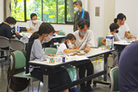 - 幼児対象の「夏休み昆虫教室」を開催しました。講義室でバッタのさがし方を練習したあと、センター近くの草はらでバッタとりに挑戦! 虫とり網を使わなくても手で簡単に捕まえられる方法をレクチャー(写真)。さらに、オオカマキリの幼虫やナナフシモドキを見つけて大興奮! 最初は怖がっていた子もだんだんと慣れたようすでした♪