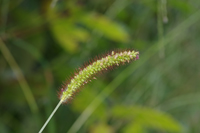 - 園路沿いでは黄金色の毛が美しいキンエノコロが所々で群生しています。その中で毛の色が紫がかり、粒々が小さめなのはコツブキンエノコロという別の種類です(写真)。こちらも園路沿いの明るい草地で見られます。