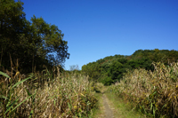 - 暖かな場所でひなたぼっこをしている生きものたちを見かけました。標柱15番付近のススキの葉の上ではハヤシノウマオイ。そのほかに、ツチイナゴやカナヘビの赤ちゃんも!よほど気持ち良かったのか、近づいてもじ〜っとしていました。