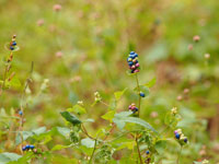 - 様々な草木の実が色付いて、園内がカラフルに♪ めだかのT字路のノブドウやノイバラ、標柱3番付近のムラサキシキブ、そして標柱6〜7番間のハダカホオズキ。今朝の雨でしっとりと濡れ、つややかに輝いていました。