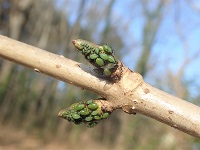 - 公園内には数本しか自生していないクマシデ。冬芽がだいぶ膨らんできていました。アカシデの冬芽は全体的に赤茶色ですが、クマシデは黄緑色味が強いです。標柱5番付近の斜面に数本見られます。