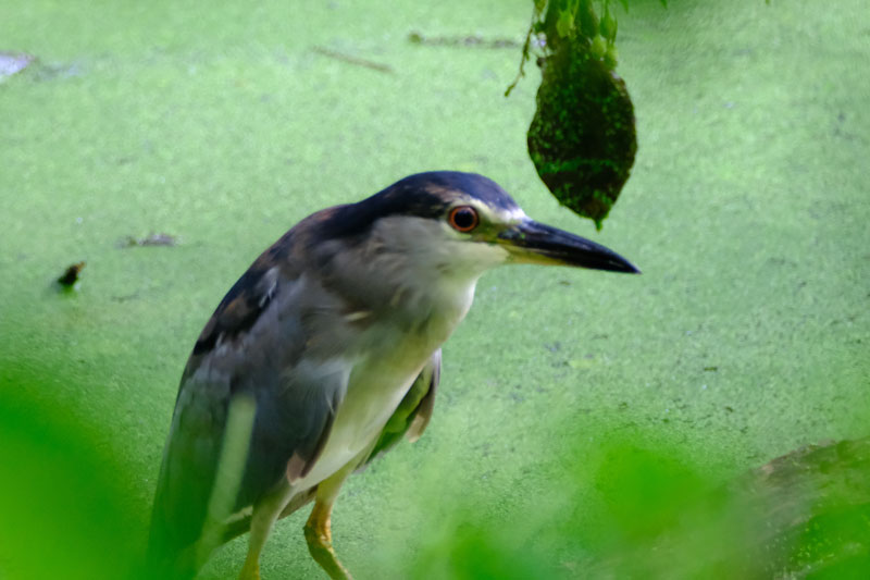 - 干上がり気味だった八ツ橋の池に、ここ数日の雨で水が戻ってきました。その暗がりにたたずんでいたのは久々の出会いとなるゴイサギ(写真)。夜行性の鳥ですが、薄暗い天気のときには日中も活動することがあります。通称“ホシゴイ”と呼ばれる幼鳥の羽から、艶やかな成鳥の羽に生え換わるには2〜3年かかるといわれ、今日の1羽はその途中の若いゴイサギのようでした。ここ数年、前のような10羽を超える群れは見かけなくなりました。