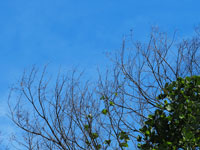 - 陽射しはなくとも蒸し暑い日。標柱12番近くの湿地で吸水していた黒い影がヒラヒラと林の中へ。後を追うと、木の枝で大きな翅を開いて休んでいたのはクロアゲハのオスでした。吸水していたときは翅を閉じていましたが、休むときは開いて止まることが多いようです。
