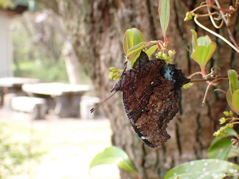 - 空全体が鈍色の雲に覆われていましたが、お昼前から青空が見えるようになりました。薄日が差してぬくもりが感じられるようになった頃、林縁ではムラサキシジミが翅をいっぱいに広げていました。