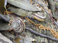 - 思わず肩をすくめてしまうほど、冷たい風がびゅう! と吹く一日でした。風を避けるように、標柱1番の地図看板の柱にいたのはハガタクチバ。また、標柱20〜21番間のアオキの葉には、身を寄せ合った7匹のムラサキツバメの集団がいました。どちらも成虫で越冬をします。