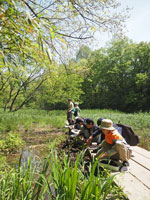 - 川口市立仲町小学校3年生が校外学習のため来園しました。学校の周辺に自然が少ないとのことでしたが、その分みんな好奇心旺盛! どんぐりを拾ったり、コバネイナゴを捕まえて観察したり、ヒヨドリやシジュウカラの声を聞いたり。五感を活用して生きものに親しみました。ヨシ刈りが進むめだかのT字路では、園路脇にあったなが〜いヨシの茎を手に取ってフリフリ。空に綿毛を浮かべて遊びつつ、植物の種子散布について学びました。