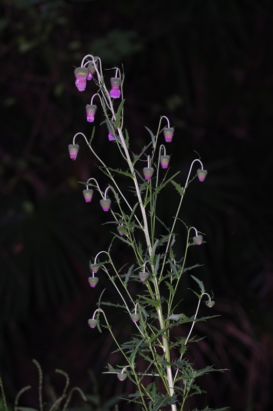 - 一週間ほど前から、標柱20番付近で目立っていた背の高いアザミ。スタッフは密かに“あのアザミ”じゃないかなあ、思い続けてきました。ようやく花が咲いたところを見に行くと、結果は予想どおり。あのアザミ=タカアザミ(写真をクリック)であると確認できました! 首を垂れるように下向きに花を咲かせる独特のスタイル。以前は同じ草地に点々と咲いていましたが、いつの間にか姿を消して幾年月。久々の開花です。