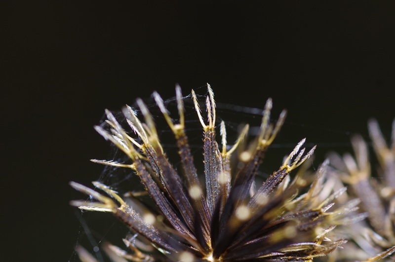 - 今日の写真は“くっつきむし”としてお馴染みの外来植物、コセンダングサの種子(写真)。正確には種子ではなく痩果(そうか)と呼ばれる果実です。この細長い中に、種子がひとつだけ入っています。さて、くっつく原理はというと、先端に出ている3本の角のような突起にご注目。突起部分にはさらに逆向きの丈夫な毛が生えていて、この部分が返しとなって衣服から外れにくくなっています。